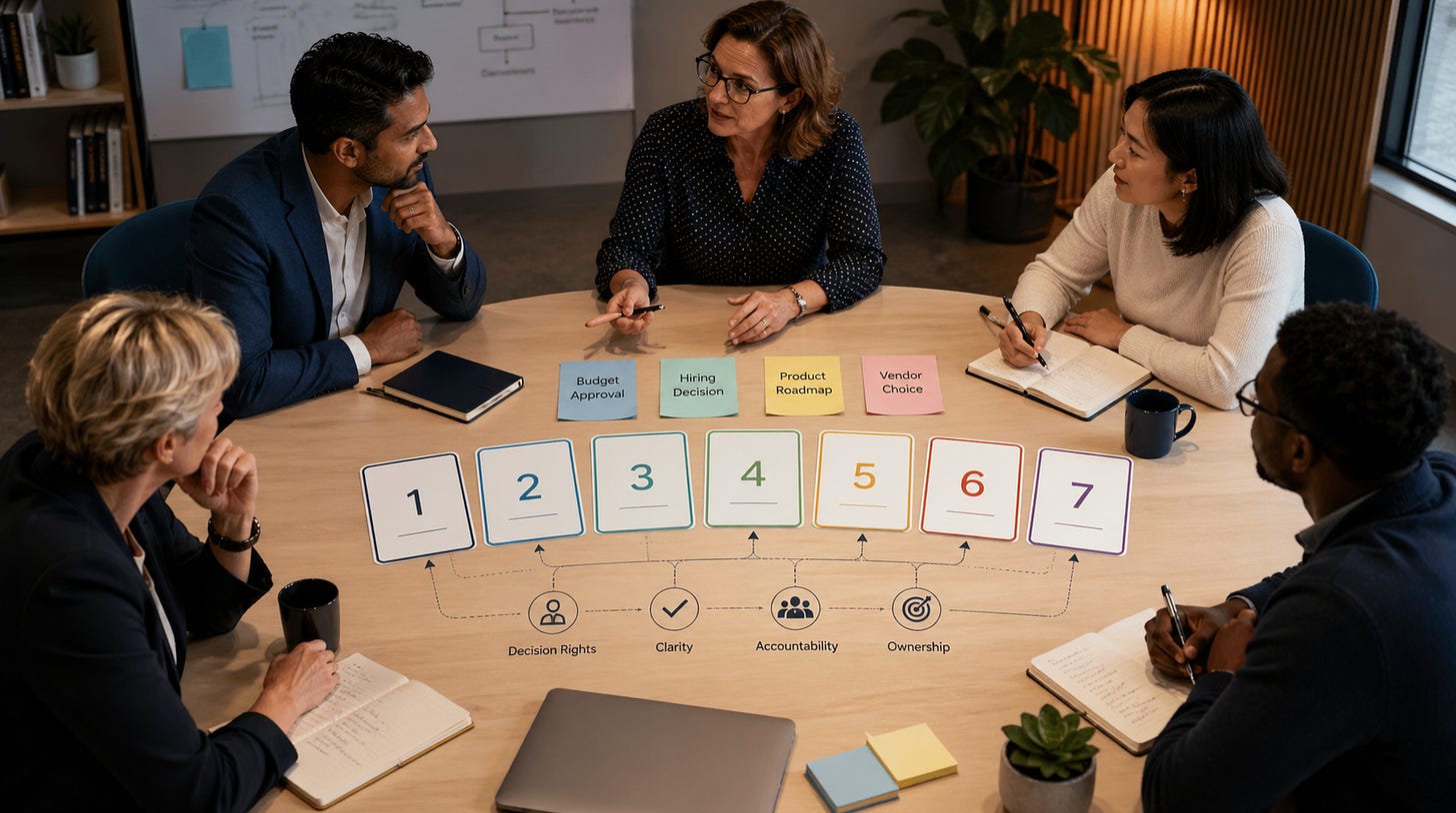 A product team thinks it owns the roadmap. Sales thinks customer commitments should drive priorities. Finance wants to approve anything with budget impact. Legal gets involved late and stops the train. The executive team says it wants empowered teams, but reverses decisions when the result feels uncomfortable.