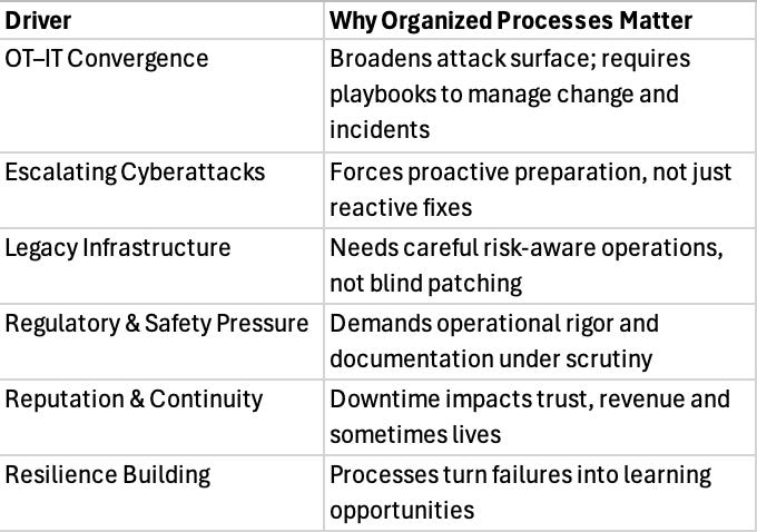 And unlike IT, these systems were not designed with frequent change or rapid incident response in mind. Many still run legacy hardware or software not touched in over a decade.