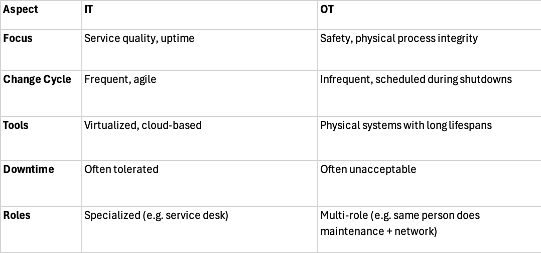 OT doesn’t lack discipline. But it has different priorities, constraints and historical context.